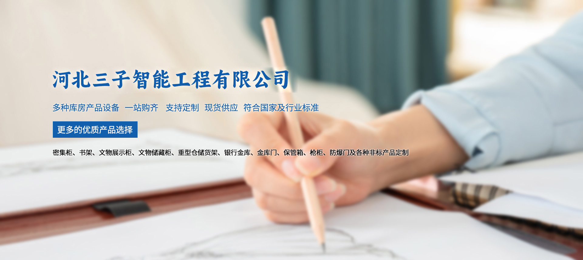 河北三子智能工程有限公司主營密集柜、書架、文物展示柜、文物儲藏柜、重型倉儲貨架、銀行金庫、金庫門、保管箱、槍柜、防爆門及各種非標(biāo)產(chǎn)品定制。我們集研發(fā),設(shè)計(jì),生產(chǎn),銷售和服務(wù)于一體,擁有國內(nèi)先進(jìn)的設(shè)備和專業(yè)的制作團(tuán)隊(duì),我們秉承踏實(shí),創(chuàng)新,責(zé)任的企業(yè)精神服務(wù)于檔案存儲,倉儲物流,農(nóng)業(yè)部,博物館,美術(shù)館,銀行,部隊(duì),學(xué)校等多個領(lǐng)域,我們始終堅(jiān)持用戶至上和精益求精為客戶提供優(yōu)質(zhì)的產(chǎn)品及服務(wù)。